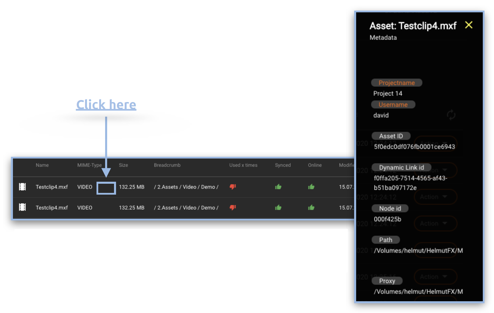 With the help of the Job Metadata Remove Action it is possible to remove a metadata entry that has already been set on an asset. This only applies to custom metadata. Custom asset metadata is displayed in Cosmo when you click anywhere in the table of displayed assets between the displayed values.
