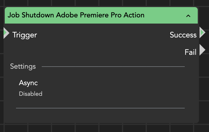 The Job Shutdown Adobe Premiere Pro Action node is designed to close a running instance of Adobe Premiere Pro on a Windows or macOS client.