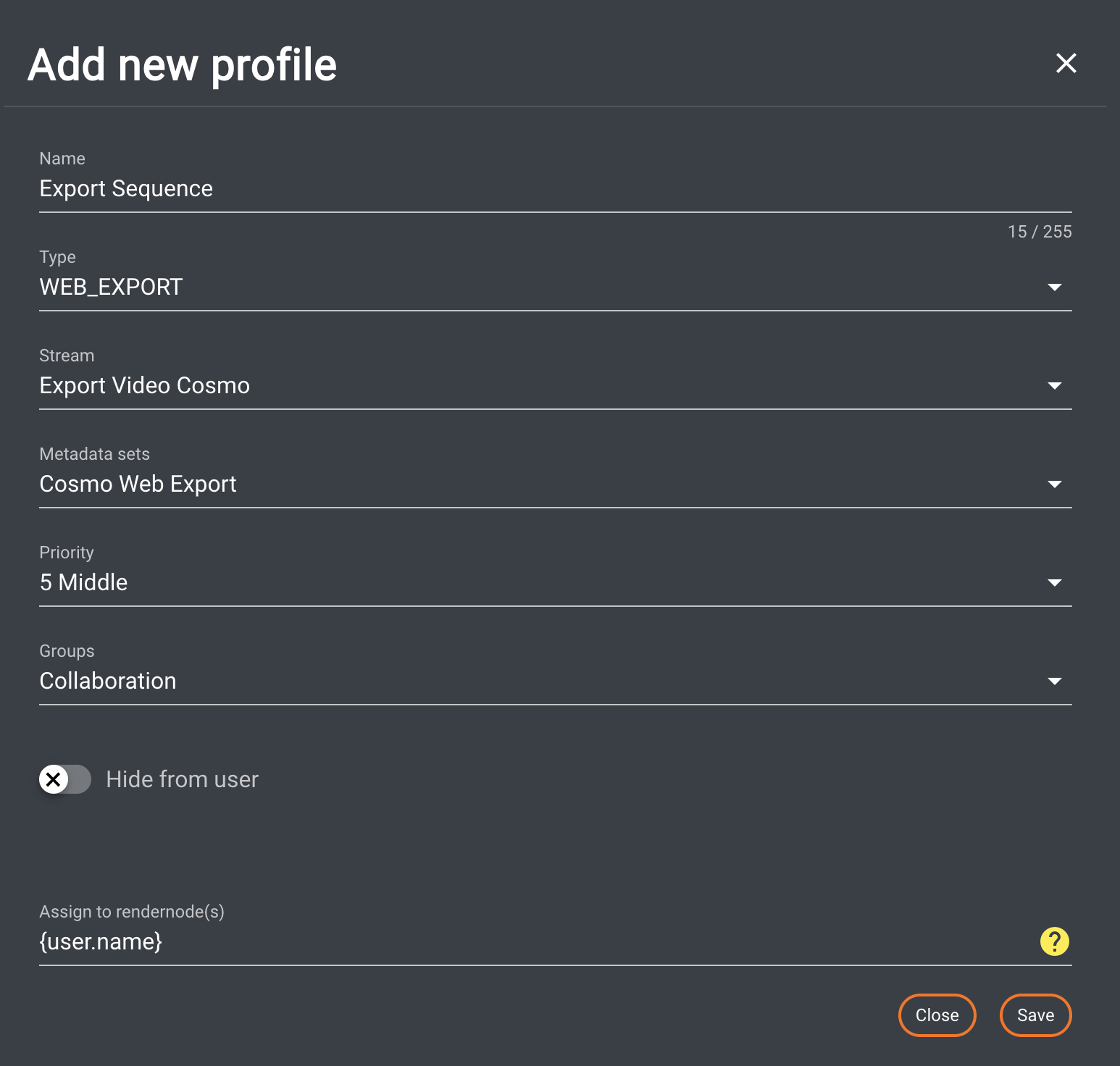A dropdown menu to select the desired group(s). All previously created groups under the menu item "Users" are displayed here and can be selected. If one or more groups are chosen, the profile is available only to these groups.