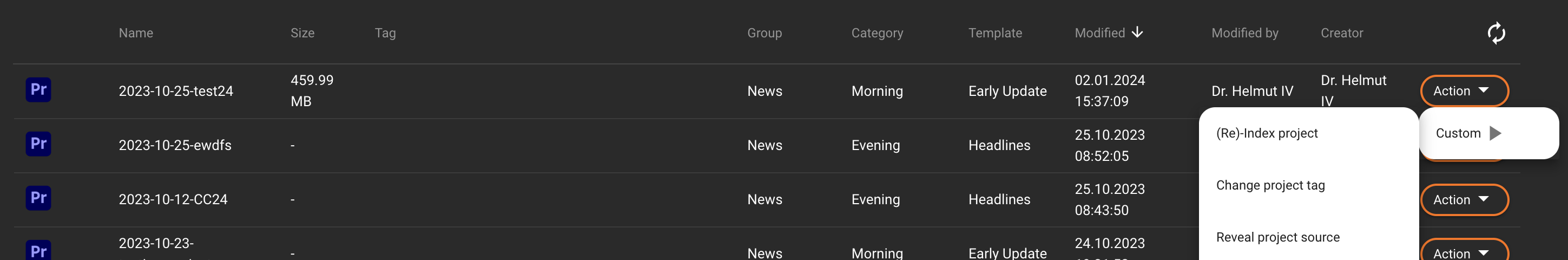 These parameters are created and set by Adobe and passed on to Helmut4 after the project has been indexed (for example on project close).