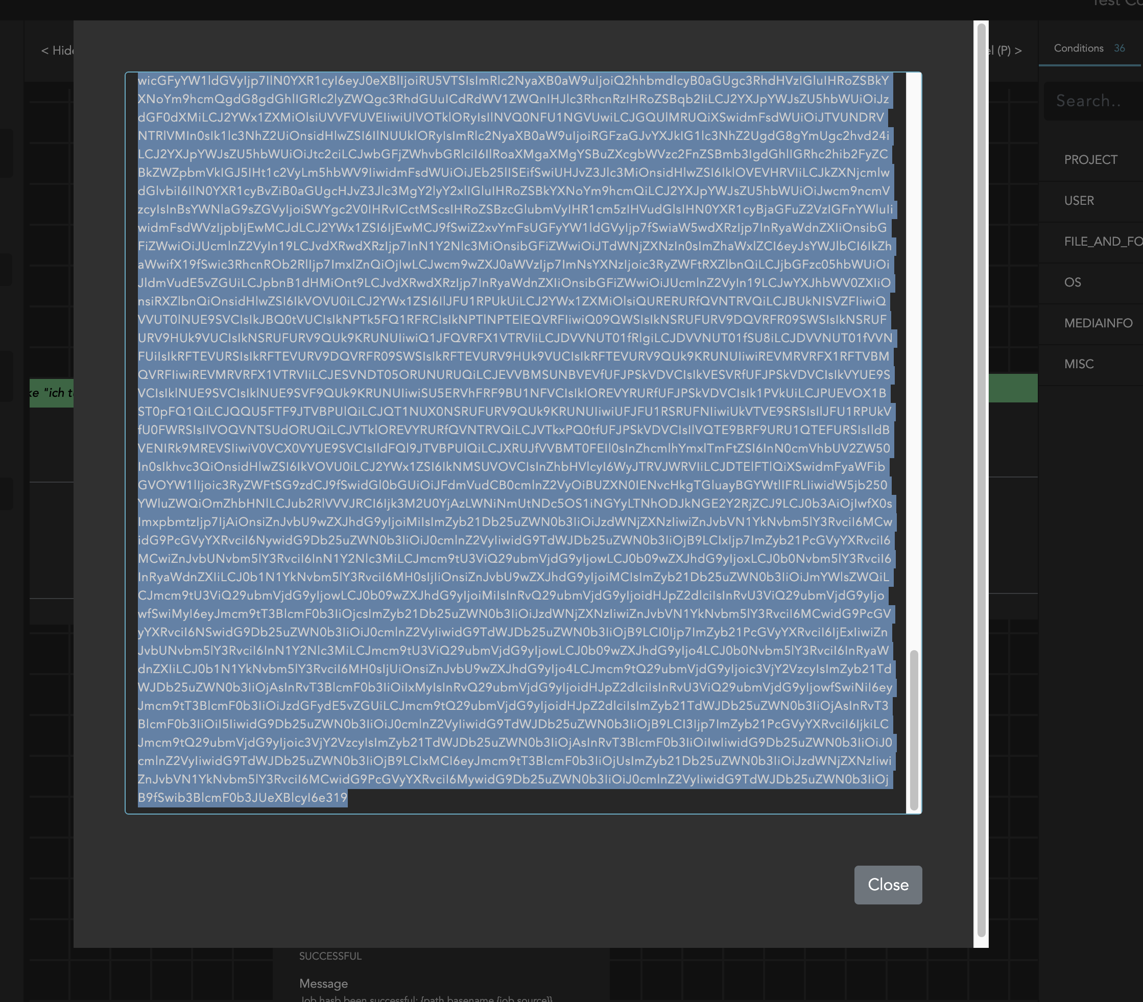 This opens a dialog box with the current stream as a string, base-64 encoded. Use it to exchange information with others, for example, in a support request. You can also paste a string into a new, empty stream to load it.