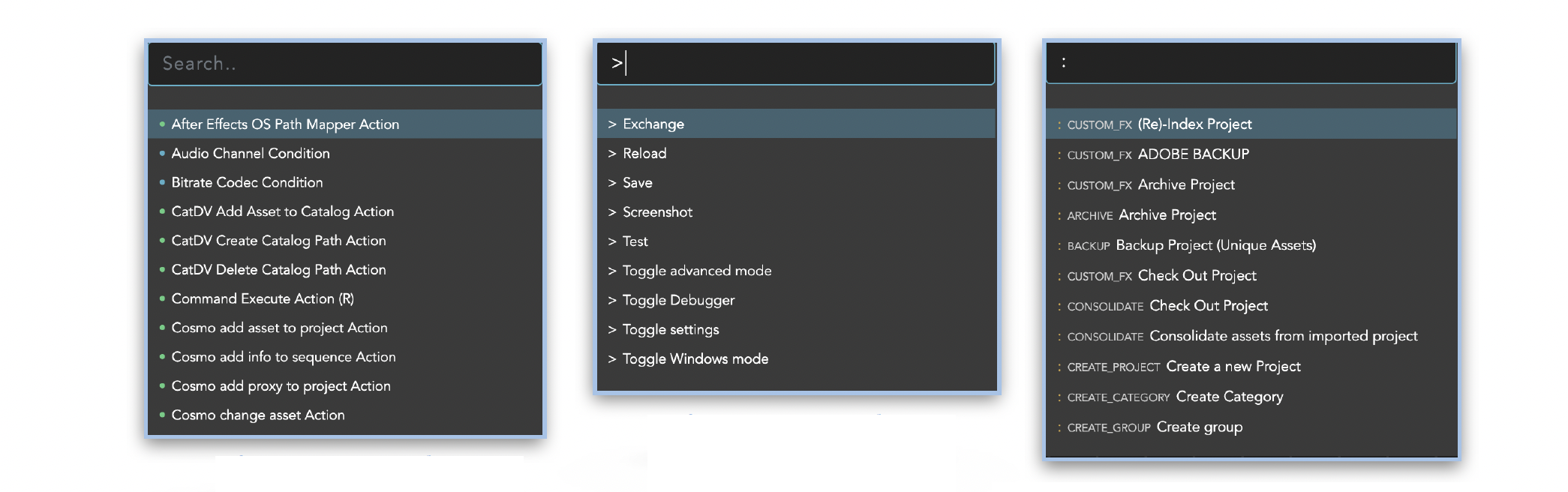 An entered search leads to the number of available conditions / actions / outputs and wildcards being displayed directly.