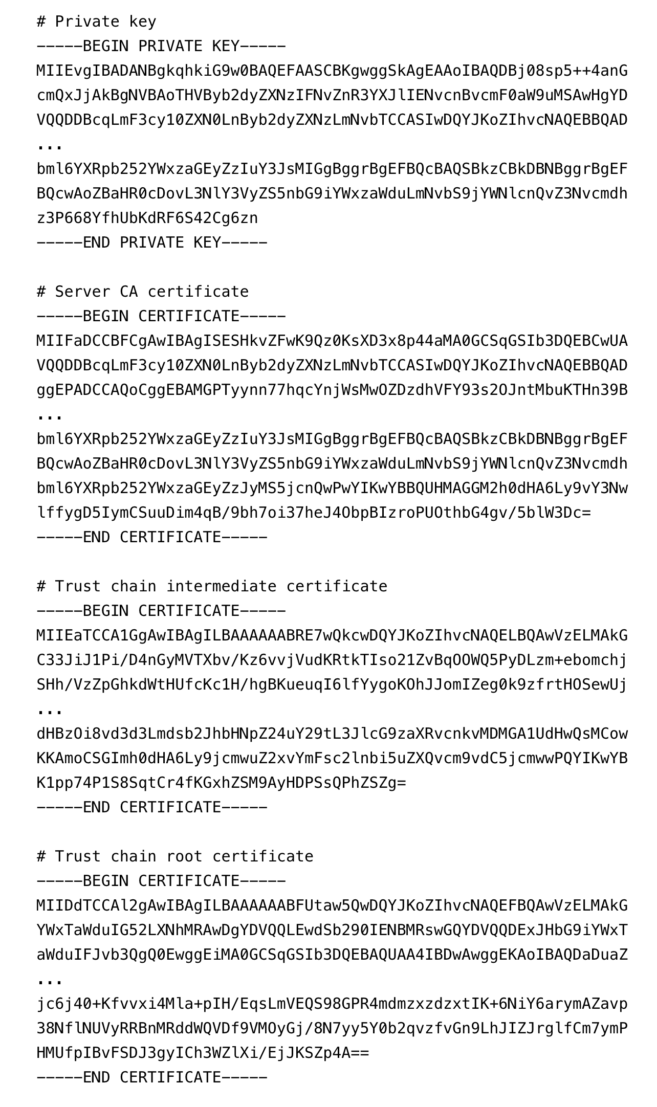 If there are several certificates for a CA-chain those need to be copied one after another which will look like this: