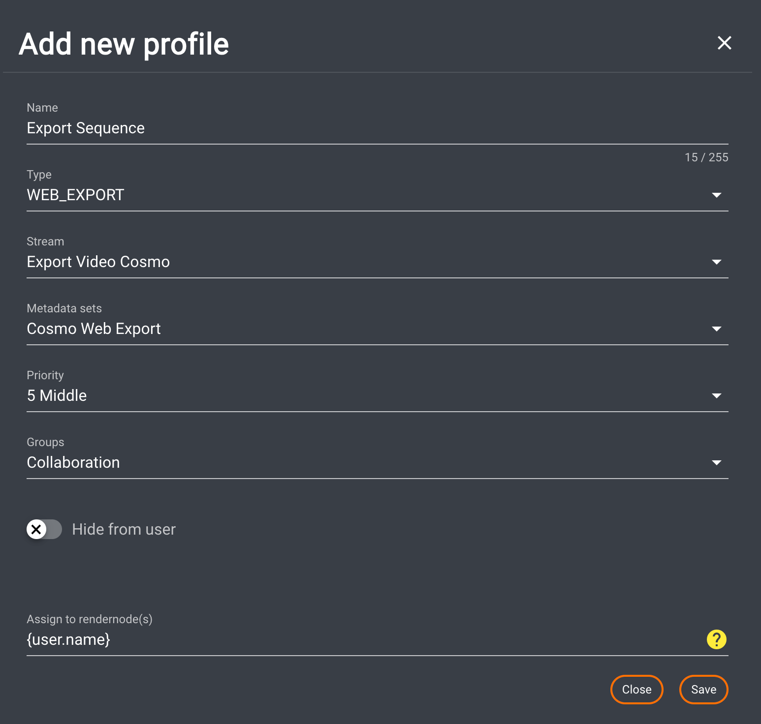 A dropdown menu to select the desired group(s). All previously created groups under the menu item "Users" are displayed here and can be selected. If one or more groups are chosen, the profile is available only to these groups.