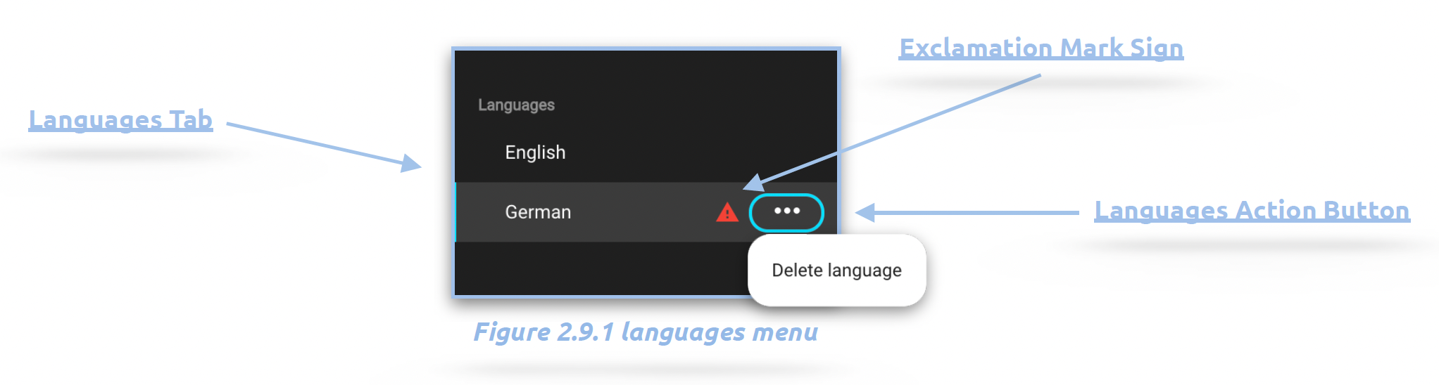 The Languages Action Button allows users to delete a language entry.