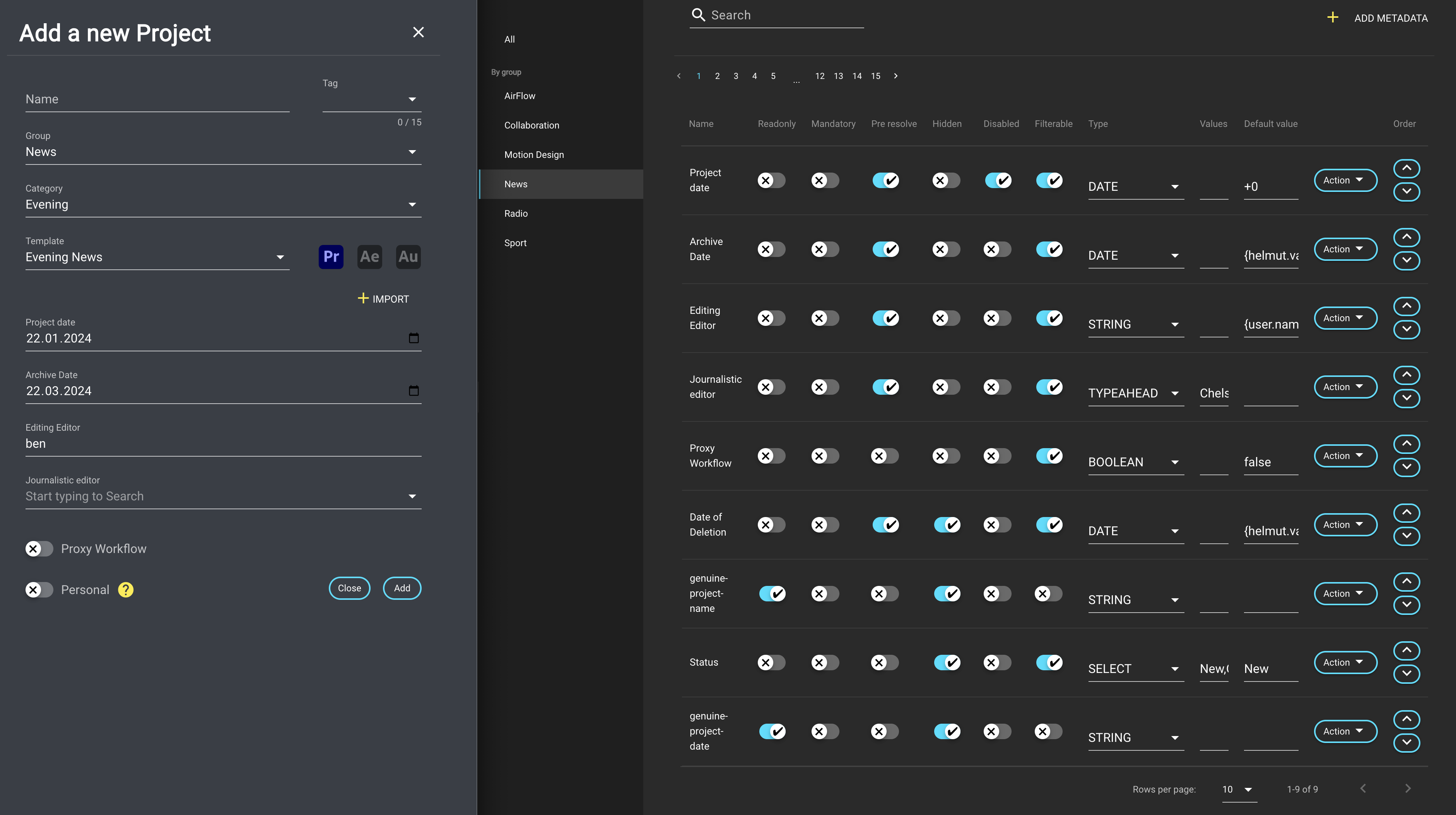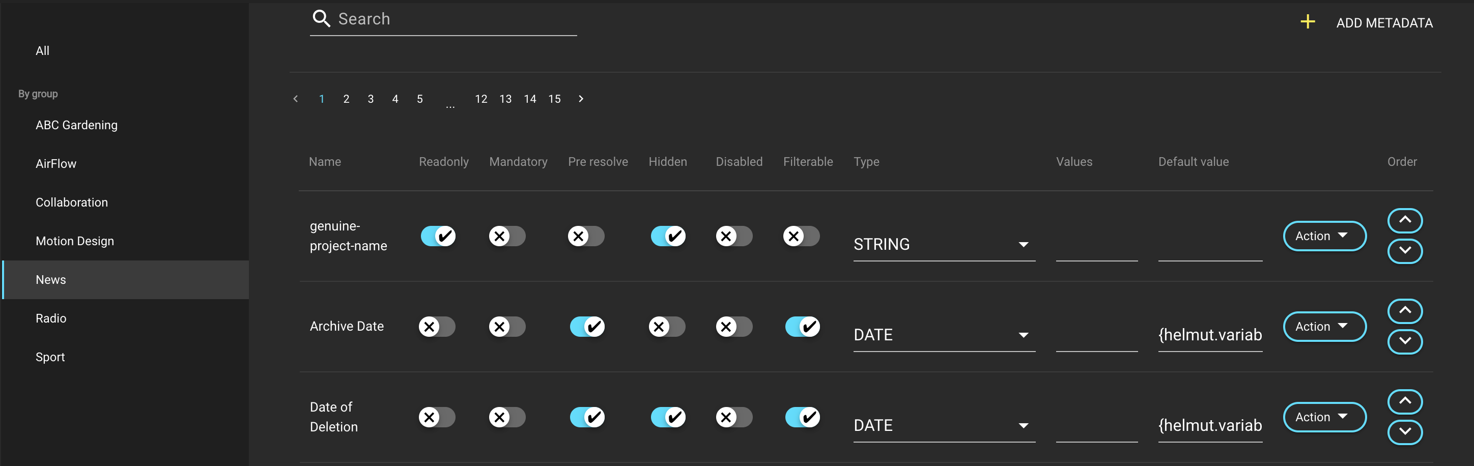It is possible to configure a distinct order for metadata within each metadata group. For example, the order can be personalized, ensuring that within the 'News' group, the 'Project Date' consistently appears as the first item. If the ordering needs to be adjusted or a different order is preferred for another group, these configurations can be modified to achieve the desired result.