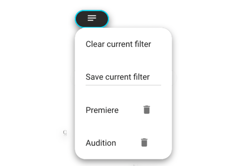 The filter button enables users to effortlessly navigate through filter bubbles.