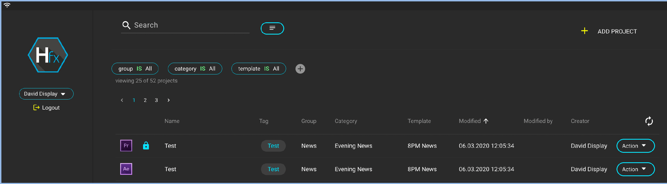 The Projects menu serves as the central hub for displaying all projects and functions as the default landing page when logging in via FX.