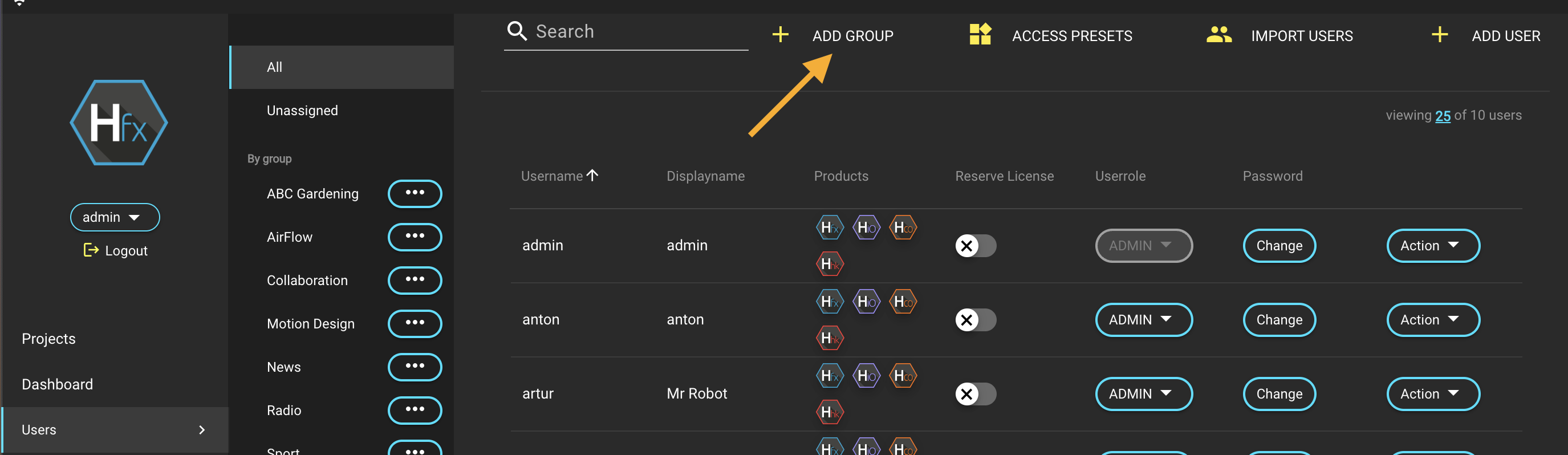 For further information refer to [Users](https://docs.helmut.de/helmut4-releases/v4.9.0/helmut4-components/helmutfx/users) - Add Group.
