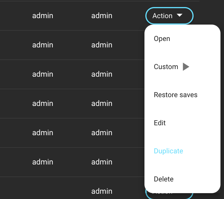 <figure><img src="https://content.gitbook.com/content/JazOaknIWynmzOb8kuKL/blobs/Uaxch9LClYJXgkB5JGvW/image.png" alt="" width="375"><figcaption><p>Duplicate trigger in Action Menu</p></figcaption></figure>