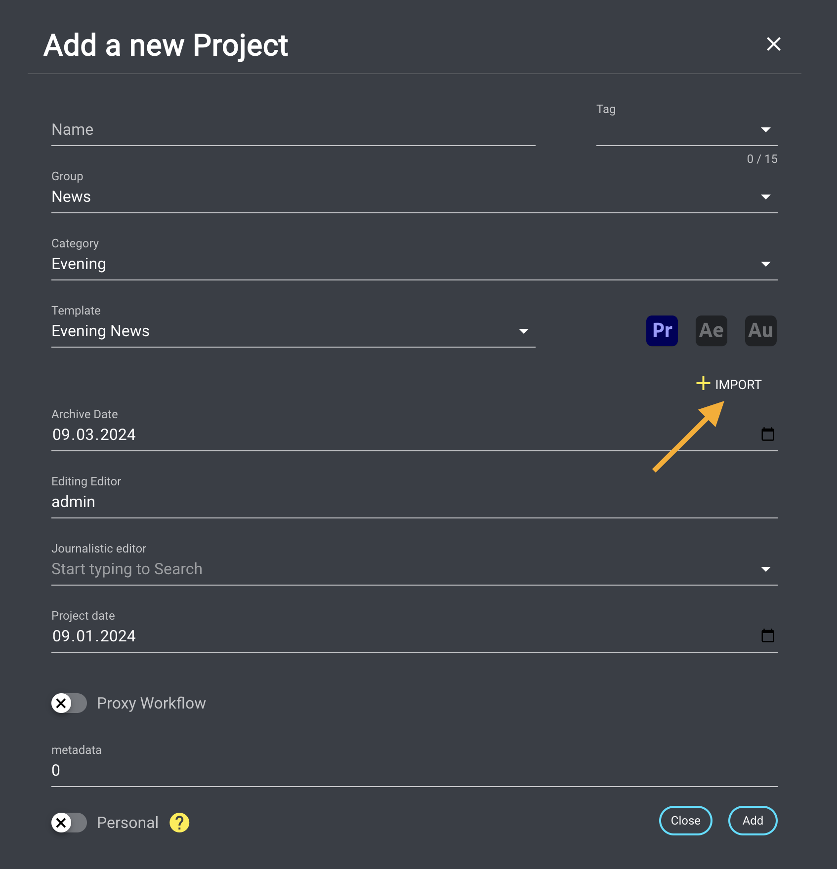 This trigger will be executed in place of the Create\_Project trigger when a project is imported in the 'Add a New Project' dialog overlay.