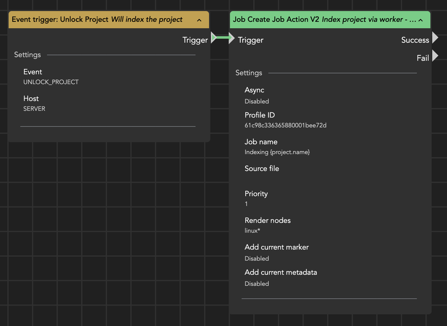 This trigger will activate whenever a project is being closed. When using Premiere Pro, it is crucial to ensure that the project lock action is properly configured, as it will monitor the deletion of the .prlock file upon project closure.