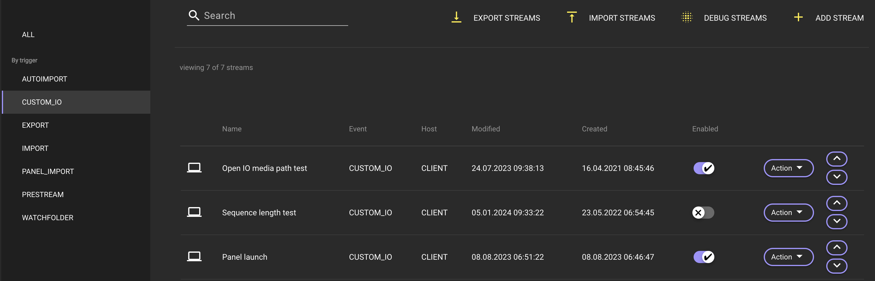 <figure><img src="https://content.gitbook.com/content/JazOaknIWynmzOb8kuKL/blobs/o6eOSGOuk6xYRXA2iNtg/image.png" alt=""><figcaption><p>Enable / disable CustomIO streams</p></figcaption></figure>