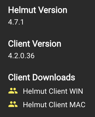 Depending on the currently installed Helmut4 version (license container version), a corresponding client download will be available at the bottom of the side menu.