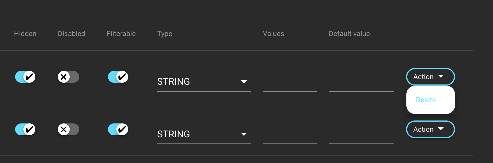 <figure><img src="https://content.gitbook.com/content/AA4Fo3OZKLqkDi9lfW7u/blobs/C6yMFiNMvEEW3U5Xa8yd/image.png" alt="" width="375"><figcaption><p>Delete a metadata in FX</p></figcaption></figure>