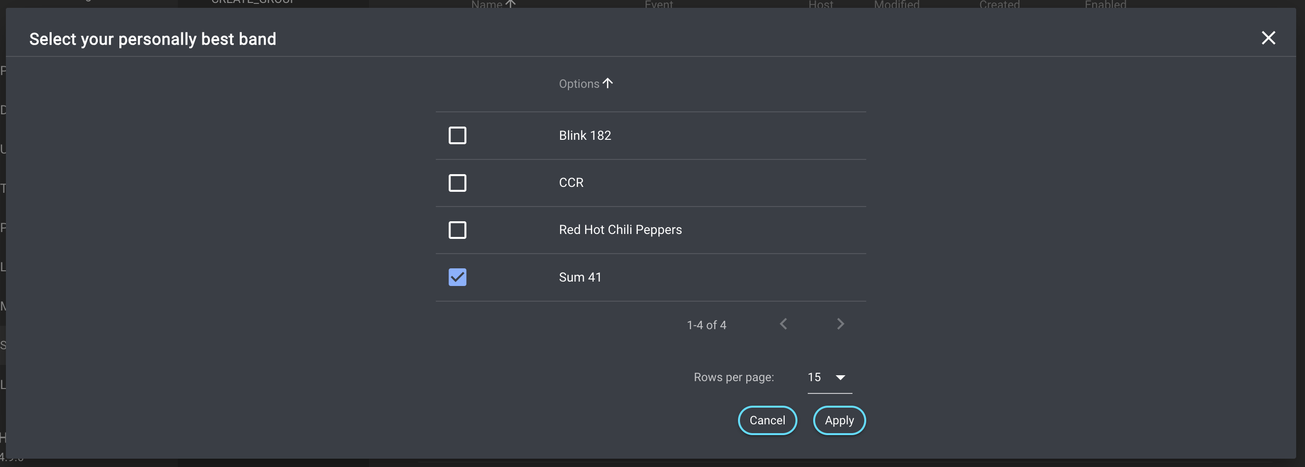 he Helmut Select Dialog Action enables you to create a list dialog in Helmut where users can either select an option or decline the selection. This action requires a title as an input parameter. Additionally, you can configure a timeout, and if the timeout expires before a response is received, the node will fail.