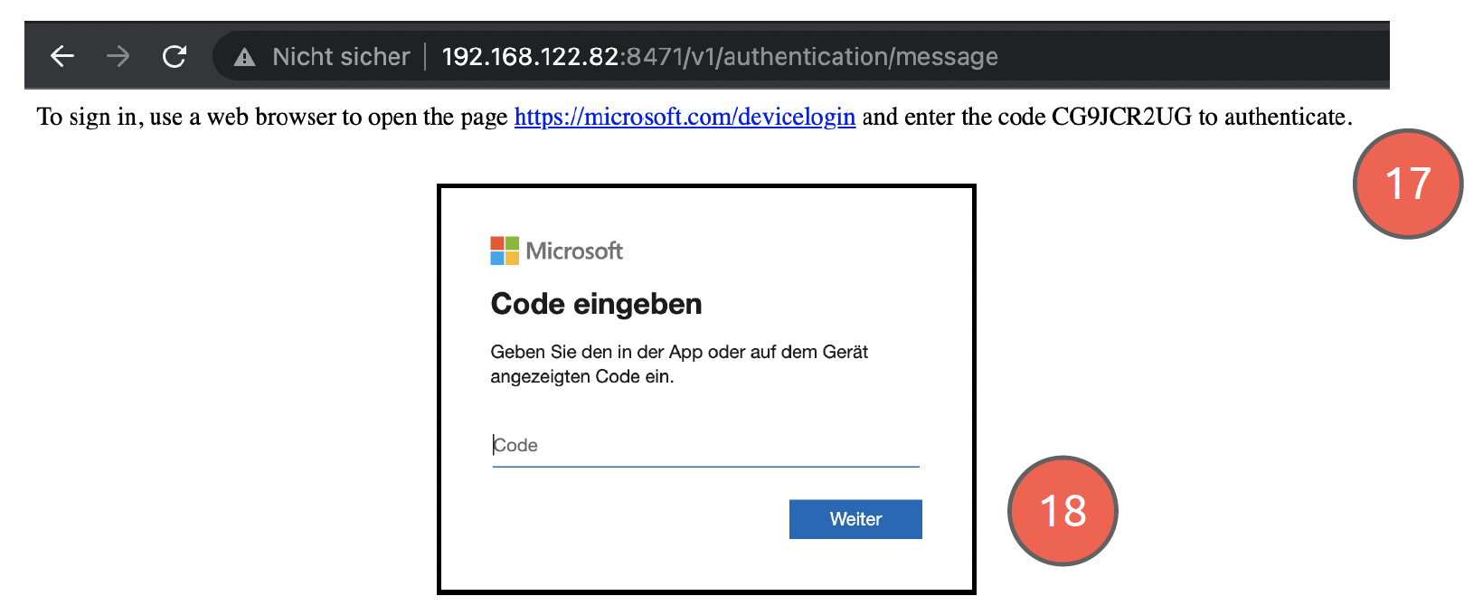 * Click on the link below to sign in and enter corresponding code to authenticate