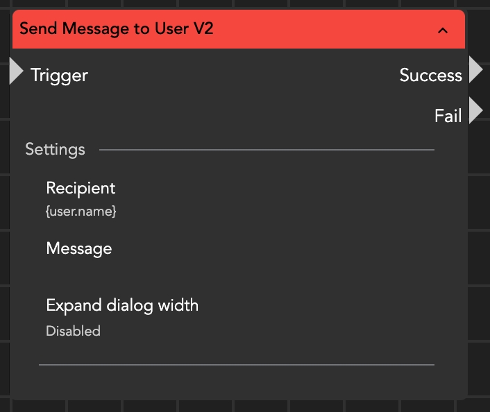 The "Send Message to User" Action node enables the sending of a message to a user.